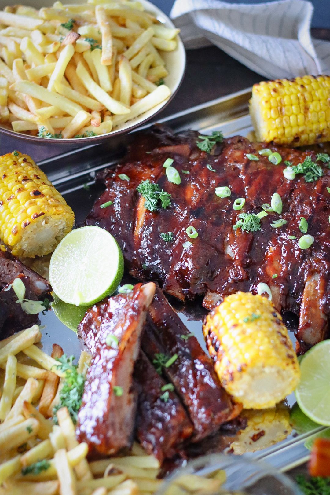 Erum við ekki alltaf að leita að einhverju fljótlegu á grillið? Máltíðirnar verða ekki einfaldari en þessi! Brjálæðislega góð bbq grísarif sem eru forsoðin og maríneruð í St. Louis bbq sósu sem borin eru fram með stálheiðarlegum frönskum og maís eru þá algerlega það sem þú þarft. Eldamennskan tekur varla meira en 15 mínútur og útkoman jafnast á við máltíð af besta steikhúsi.