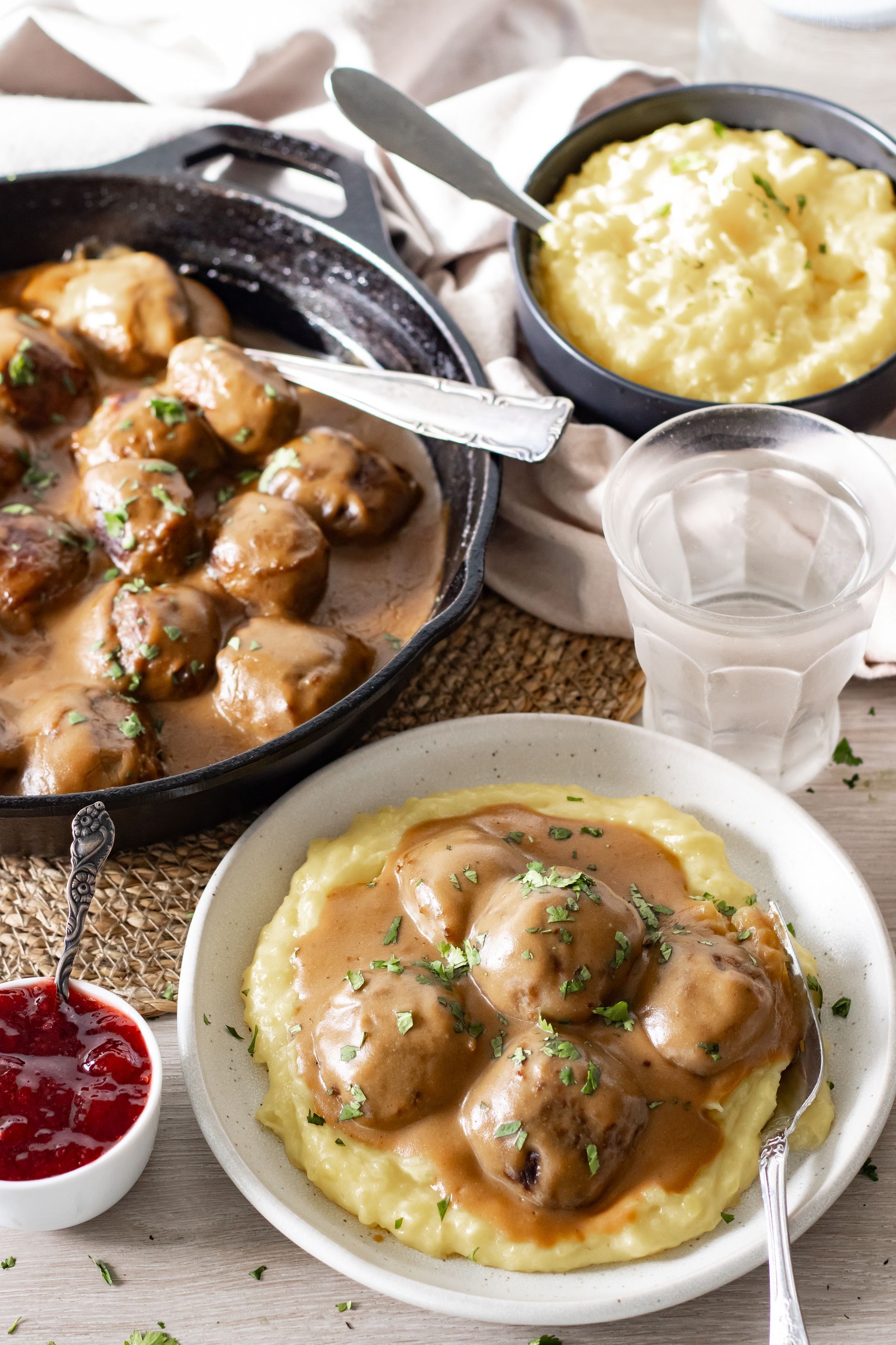 Sænskar kjötbollur með heimagerðri kartöflumús og rjómasósu